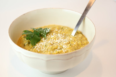 Puree the mixture and place back into pan to reheat